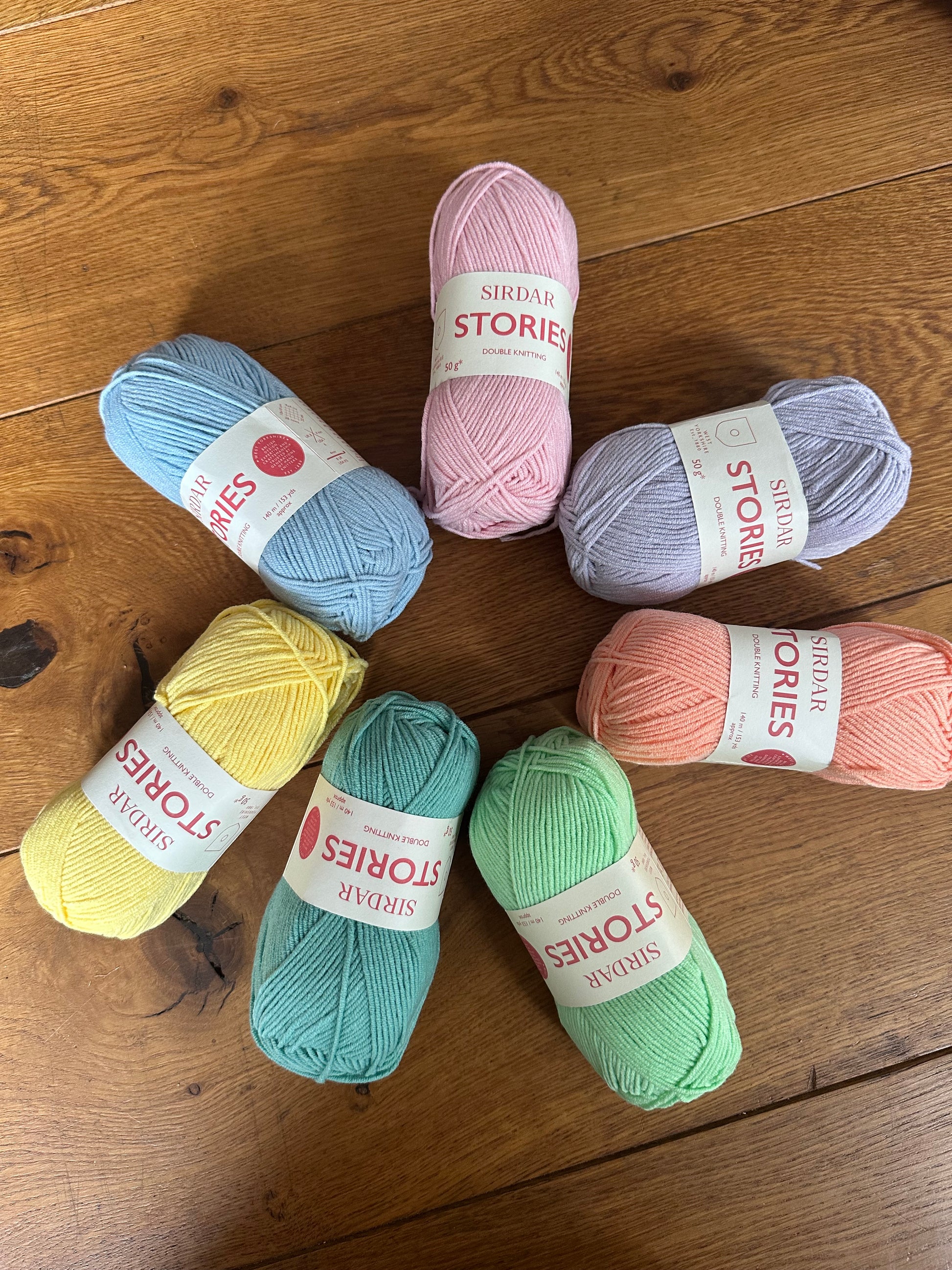 Kit contains: 7 balls of Sirdar Stories yarn, 4mm crochet hook and a stitch apothecary printed pattern all in a handy drawstring cotton project bag